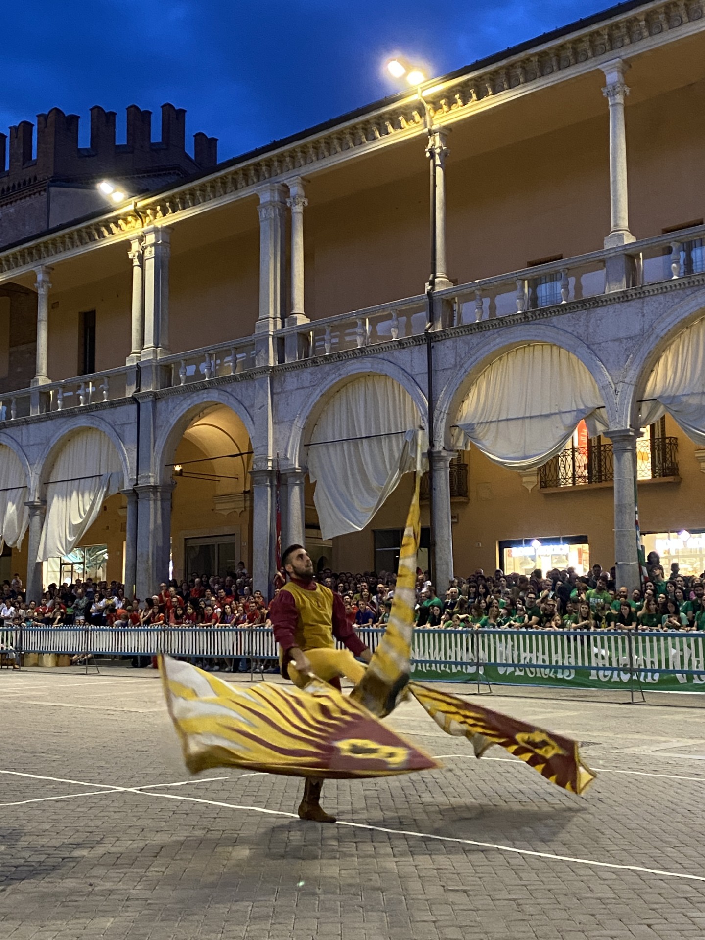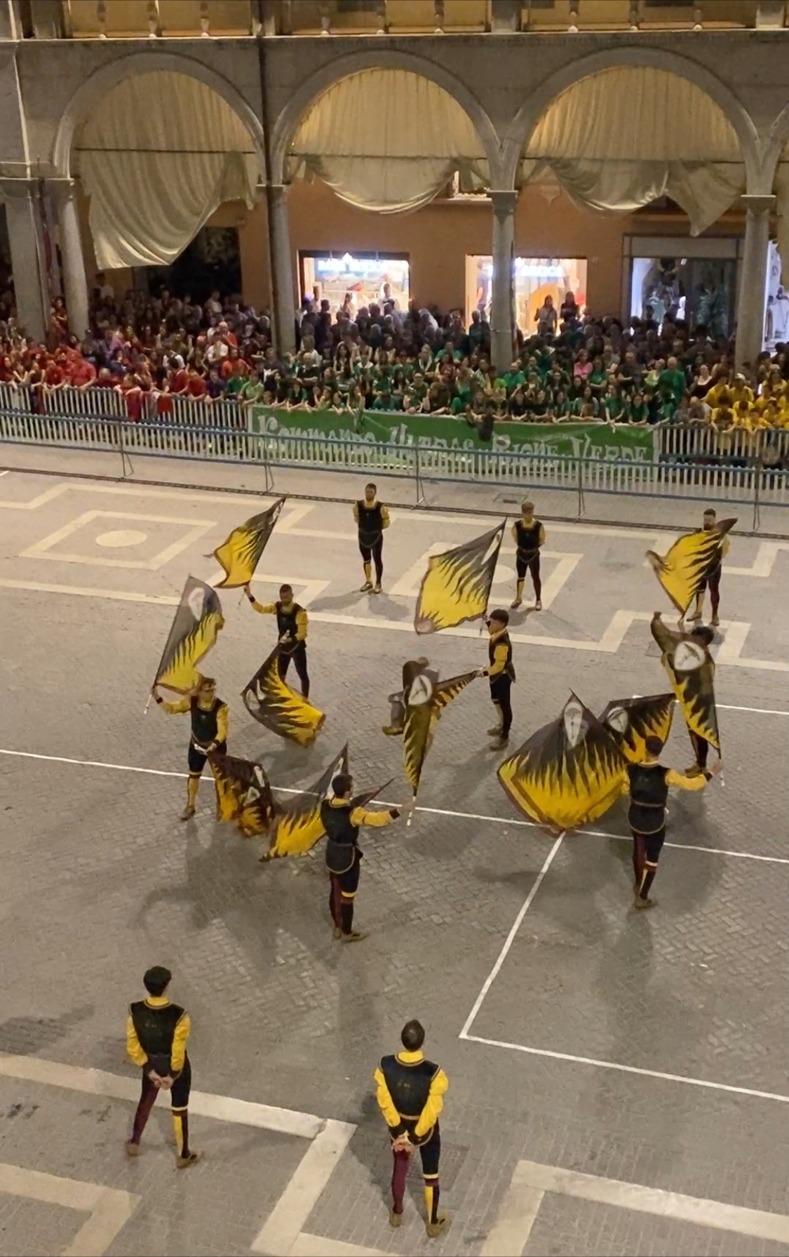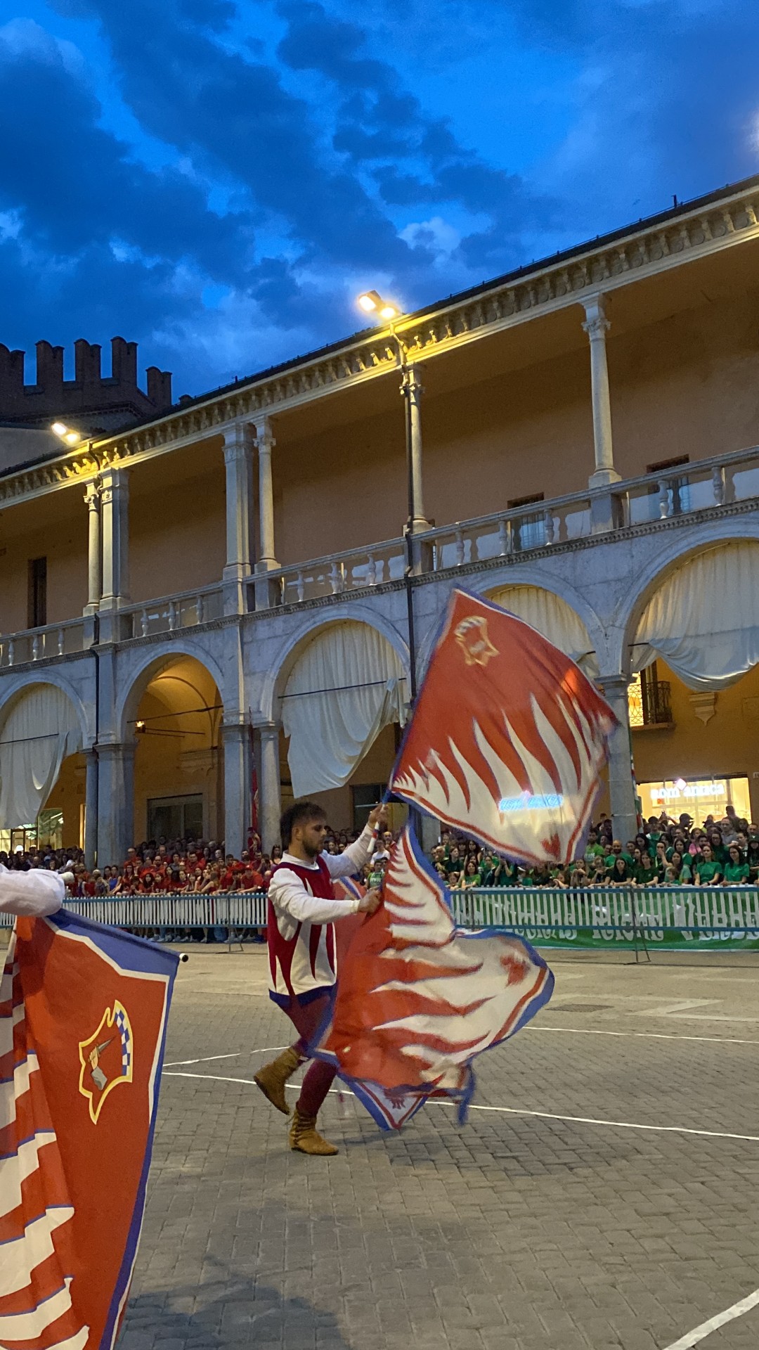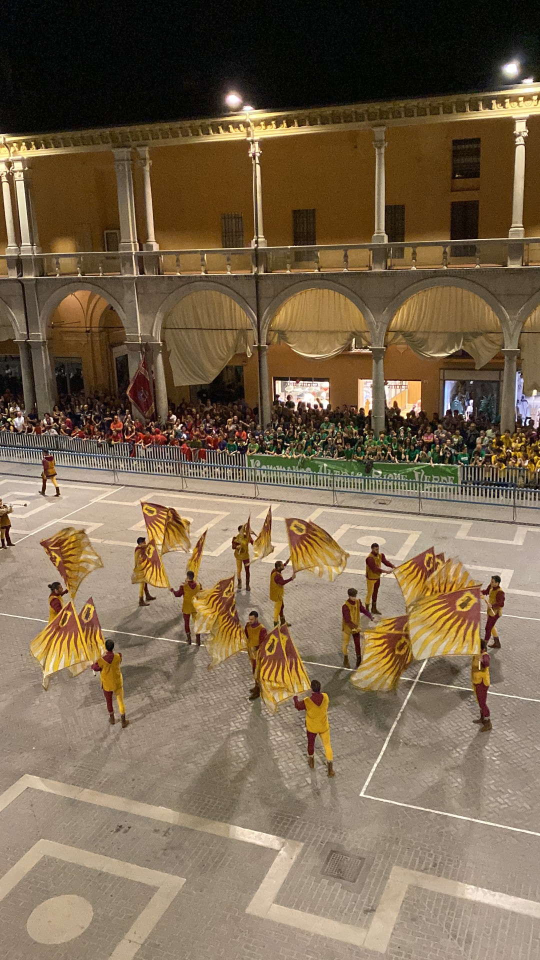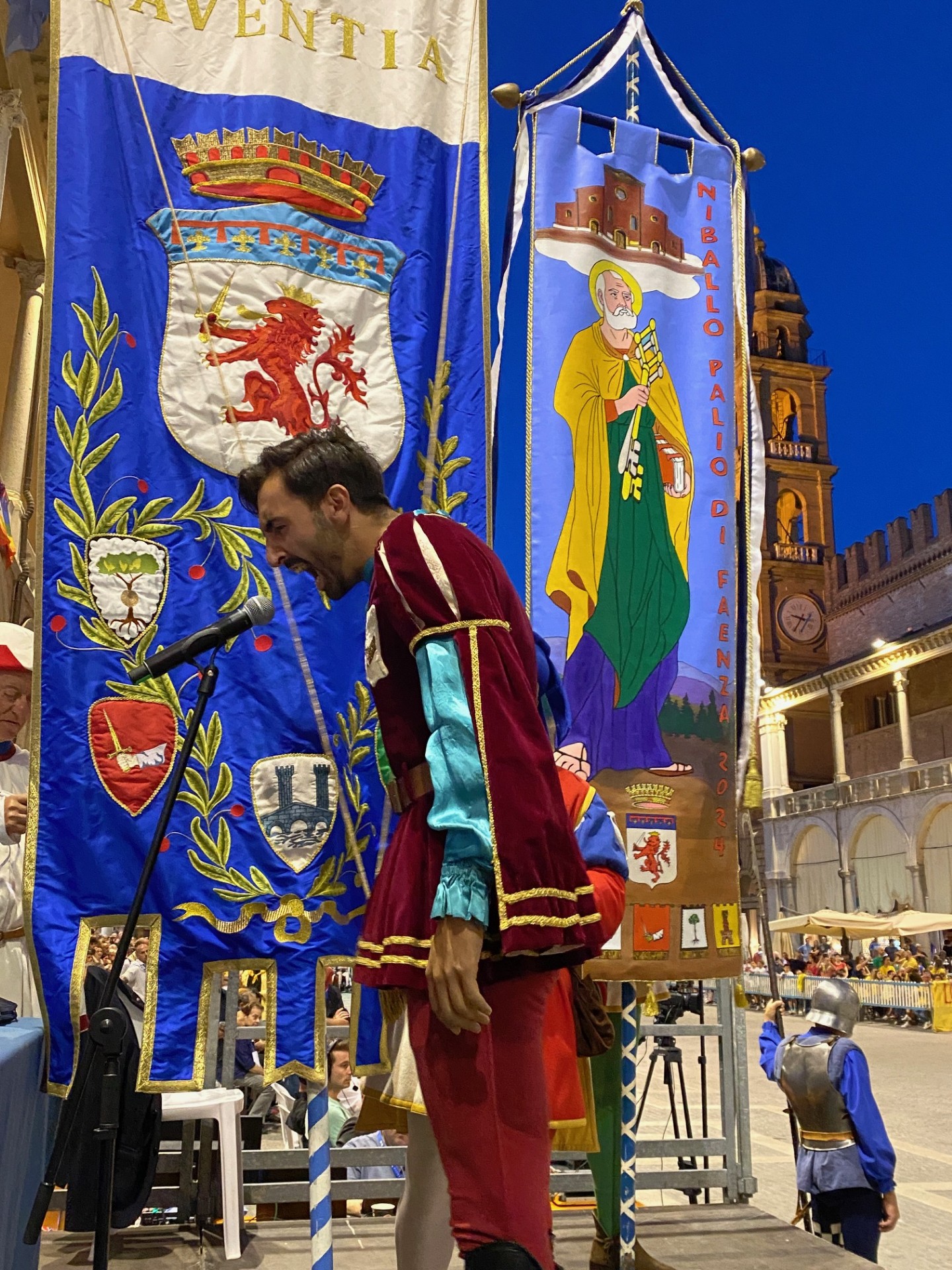 Un pubblico giubilante ha accolto questo fine settimana il Torneo Alfieri Bandieranti e Musici in programma in Piazza del Popolo. La serata del 15 giugno ha visto scendere in Piazza gli atleti delle Specialità Singolo, Piccola Squadra, Grande Squadra e Musici, mentre le gare del 16 giugno sono state aperte dal Giuramento dei Cavalieri che correranno il Niballo Palio di Faenza il prossimo 23 giugno per cui sono riconfermati i nomi dell’edizione 2023. Marco Diafaldi ha giurato per il Rione Verde, Luca Innocenzi per il Borgo Durbecco, Matteo Tabanelli per il Rione Nero, Matteo Rivola per il Rione Rosso e Gertian Cela per il Rione Giallo. Al Giuramento sono poi seguite dalle gare nella specialità Coppia tradizionale. Entrambe le gare serali sono state trasmesse in diretta streaming sui canali del Niballo (YouTube, Fb e sito www.paliodifaenza.it) e sono sempre visibili in versione integrale.
