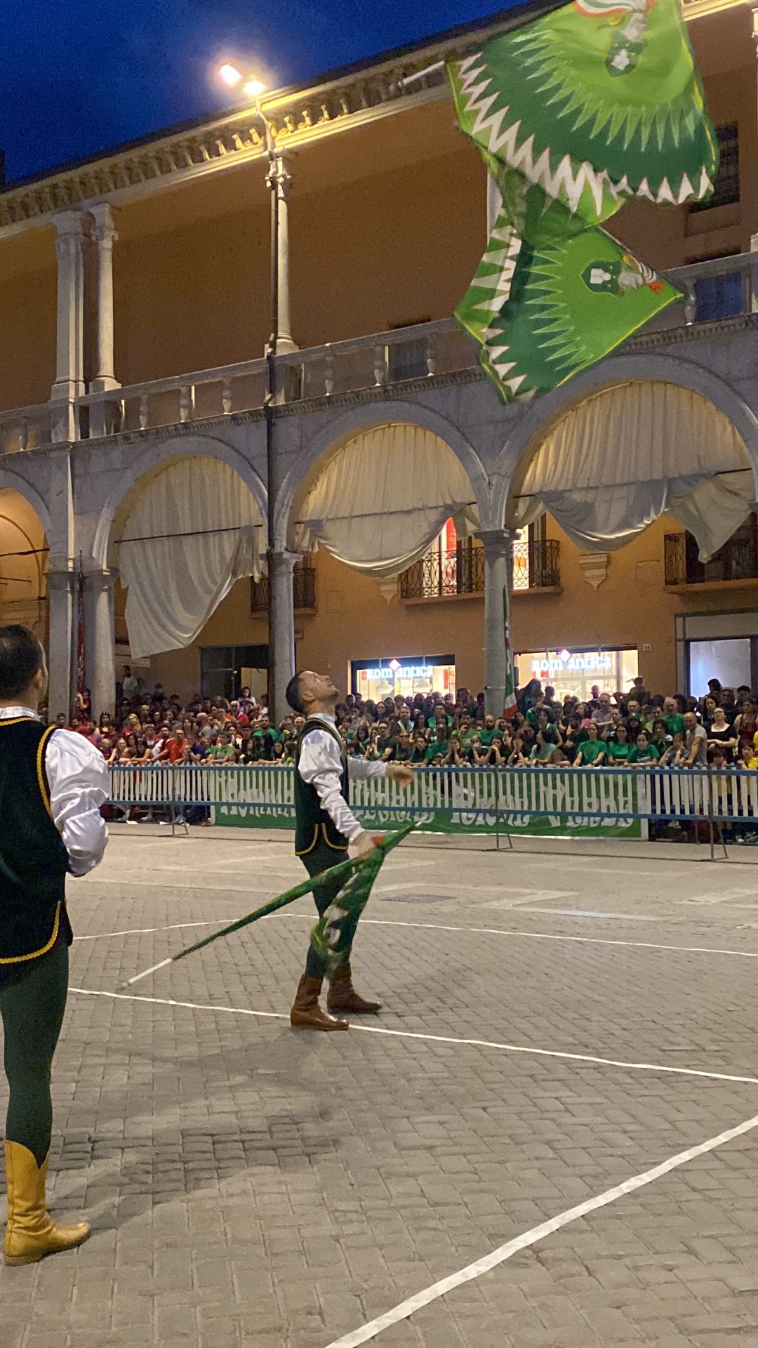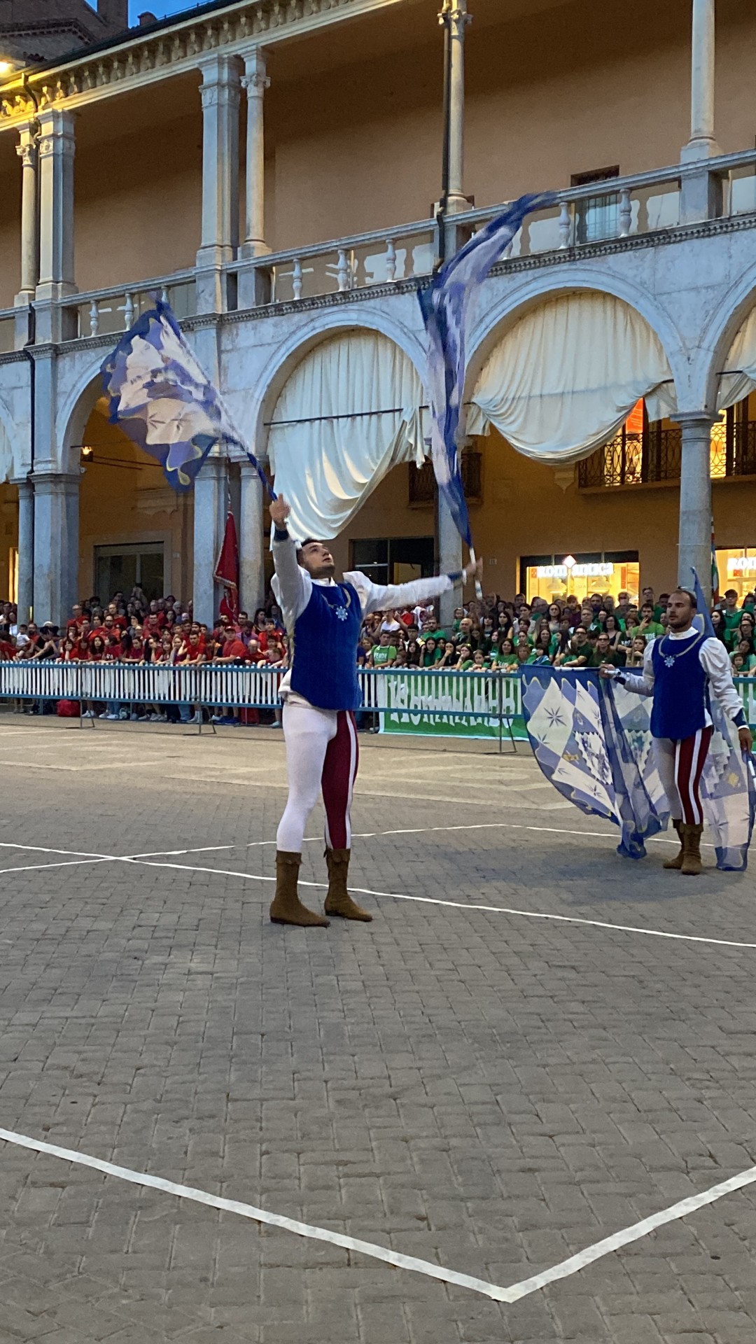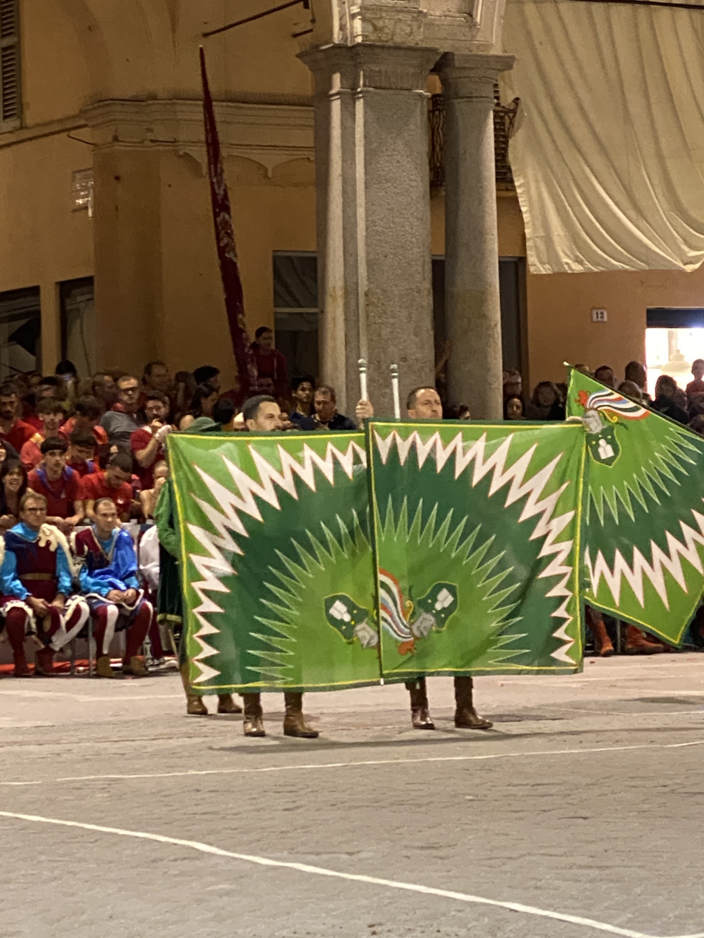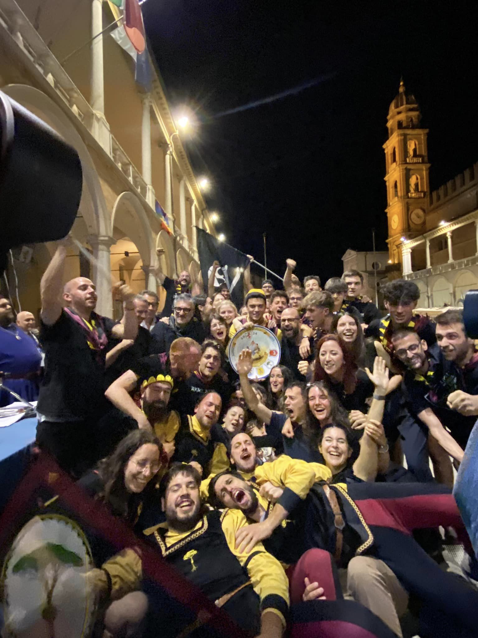 Un pubblico giubilante ha accolto questo fine settimana il Torneo Alfieri Bandieranti e Musici in programma in Piazza del Popolo. La serata del 15 giugno ha visto scendere in Piazza gli atleti delle Specialità Singolo, Piccola Squadra, Grande Squadra e Musici, mentre le gare del 16 giugno sono state aperte dal Giuramento dei Cavalieri che correranno il Niballo Palio di Faenza il prossimo 23 giugno per cui sono riconfermati i nomi dell’edizione 2023. Marco Diafaldi ha giurato per il Rione Verde, Luca Innocenzi per il Borgo Durbecco, Matteo Tabanelli per il Rione Nero, Matteo Rivola per il Rione Rosso e Gertian Cela per il Rione Giallo. Al Giuramento sono poi seguite dalle gare nella specialità Coppia tradizionale. Entrambe le gare serali sono state trasmesse in diretta streaming sui canali del Niballo (YouTube, Fb e sito www.paliodifaenza.it) e sono sempre visibili in versione integrale.