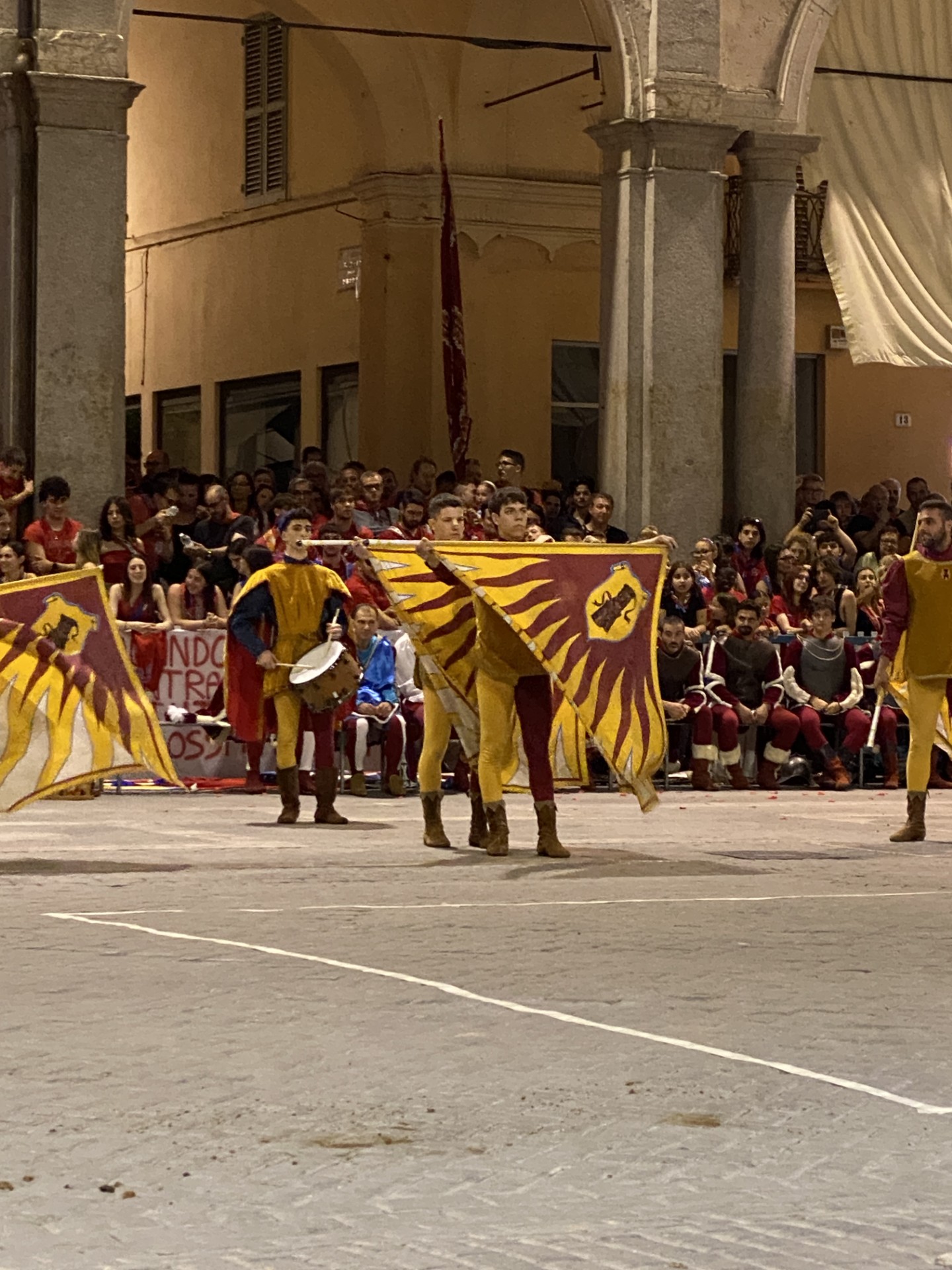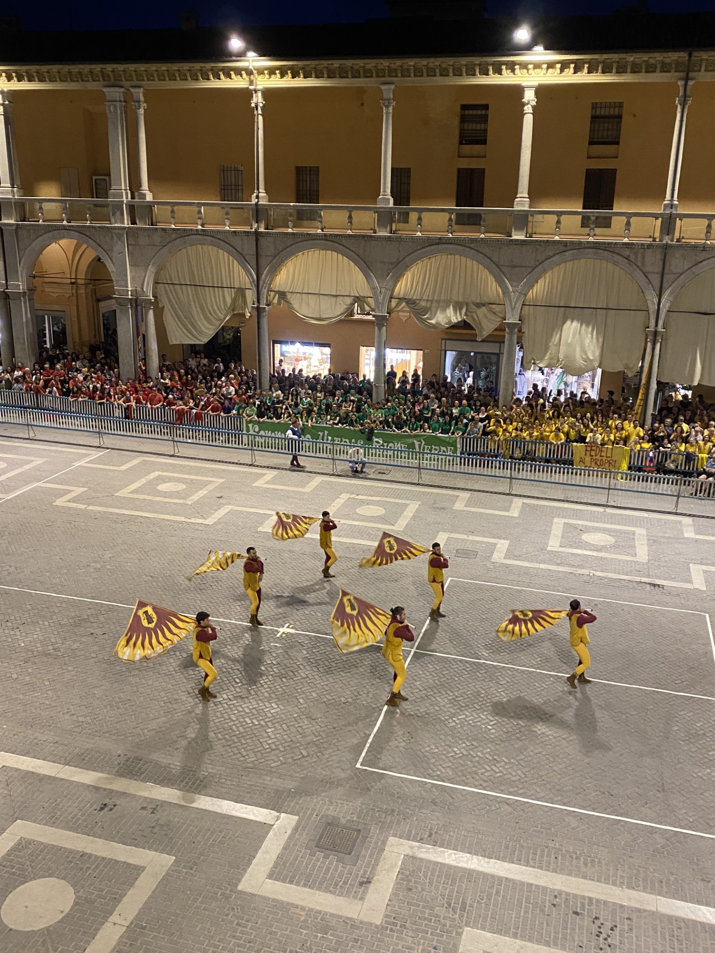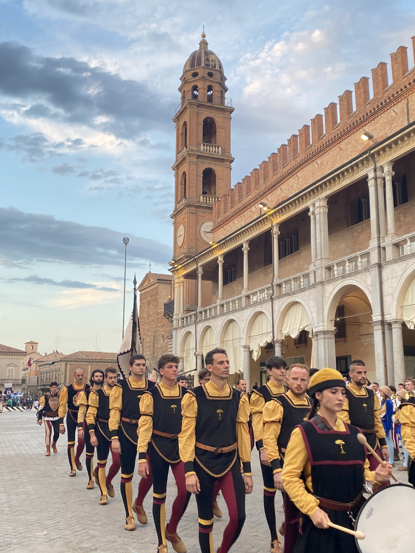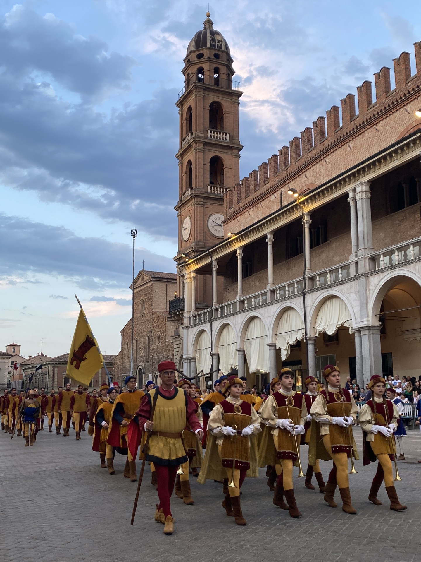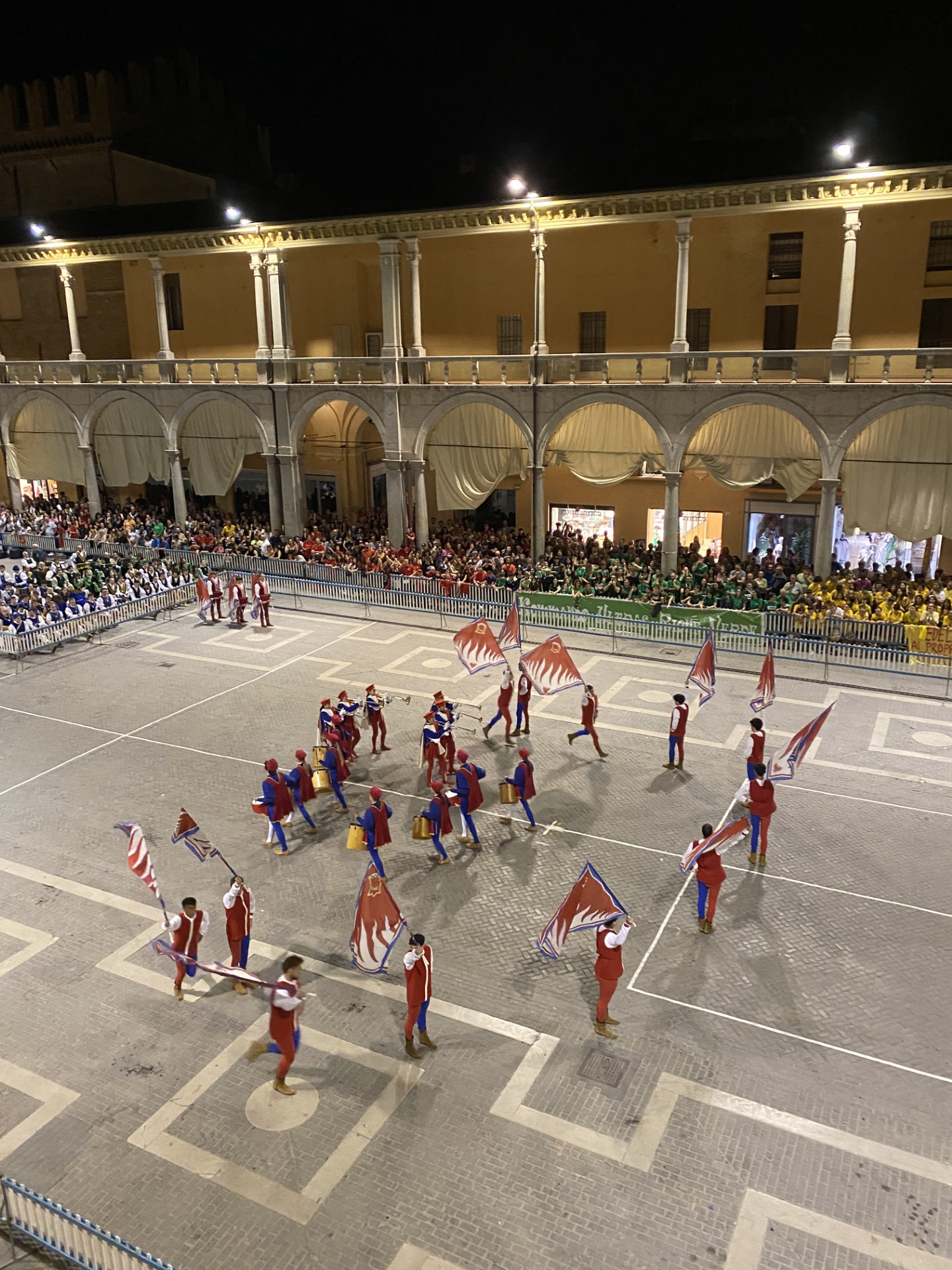 Un pubblico giubilante ha accolto questo fine settimana il Torneo Alfieri Bandieranti e Musici in programma in Piazza del Popolo. La serata del 15 giugno ha visto scendere in Piazza gli atleti delle Specialità Singolo, Piccola Squadra, Grande Squadra e Musici, mentre le gare del 16 giugno sono state aperte dal Giuramento dei Cavalieri che correranno il Niballo Palio di Faenza il prossimo 23 giugno per cui sono riconfermati i nomi dell’edizione 2023. Marco Diafaldi ha giurato per il Rione Verde, Luca Innocenzi per il Borgo Durbecco, Matteo Tabanelli per il Rione Nero, Matteo Rivola per il Rione Rosso e Gertian Cela per il Rione Giallo. Al Giuramento sono poi seguite dalle gare nella specialità Coppia tradizionale. Entrambe le gare serali sono state trasmesse in diretta streaming sui canali del Niballo (YouTube, Fb e sito www.paliodifaenza.it) e sono sempre visibili in versione integrale.
