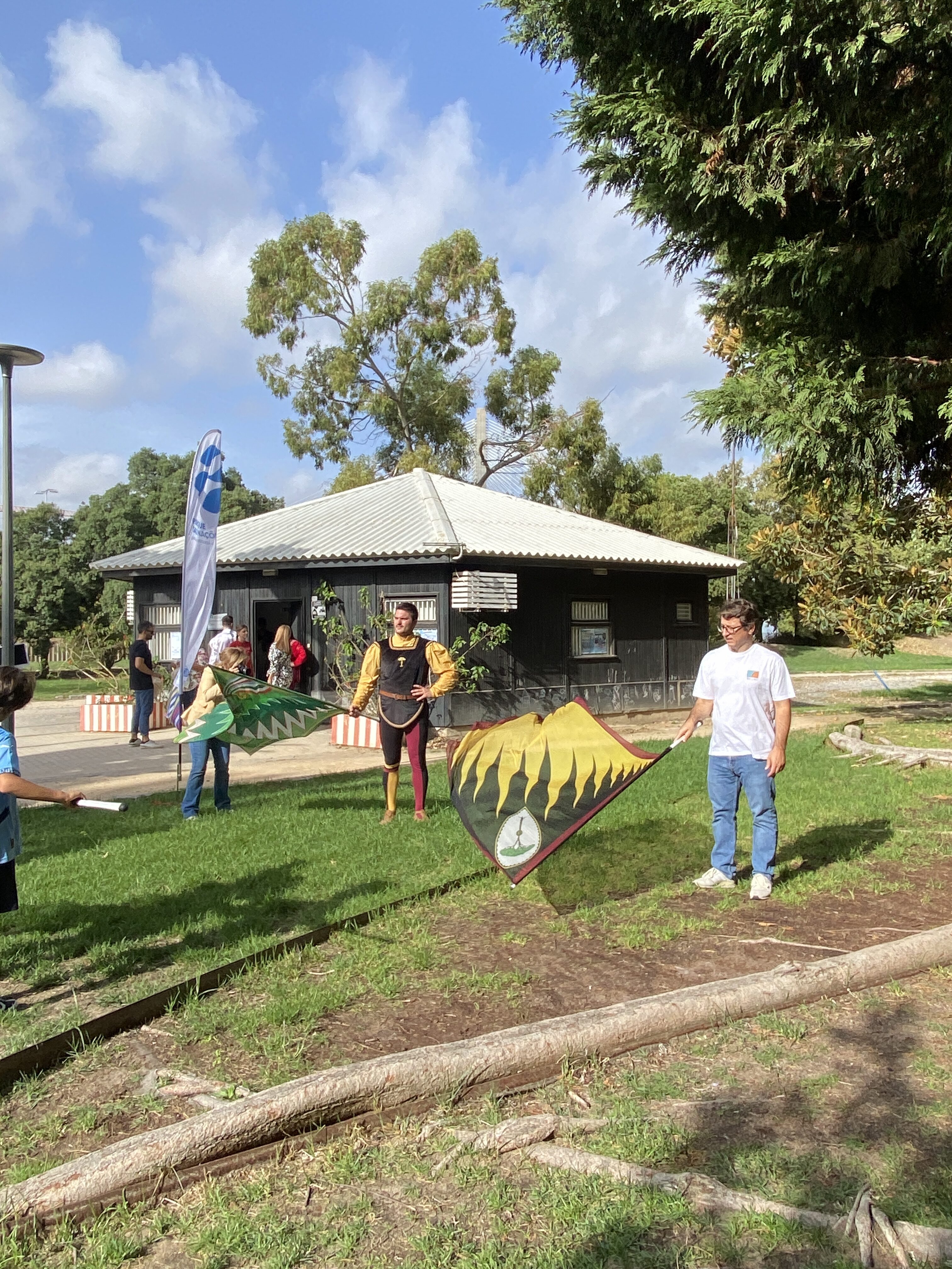 Esibizione degli sbandieratori e musici al famoso Parque das Nações a Lisbona con coreografie e workshop aperto al pubblico organizzato dalla Junta de Freguesia, uno dei Municipi di Lisbona, grazie al supporto di Francesca Caggiano Barbosa, a cui è seguito un incontro e saluti formali con il Presidente della Junta. |